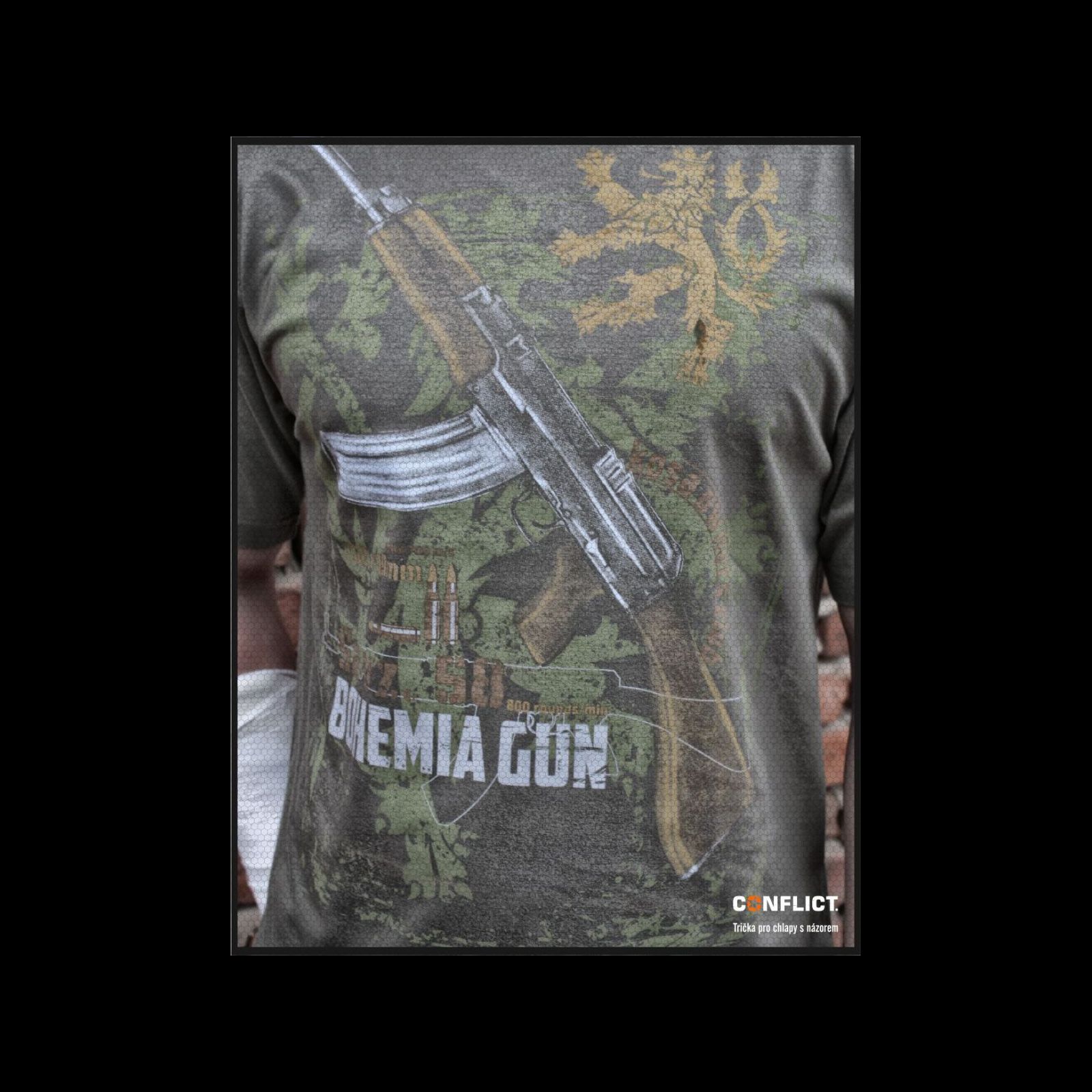 - The T-shirt has a Czech patriotic print on the front with a hand-drawn Czech submachine gun pattern 58.