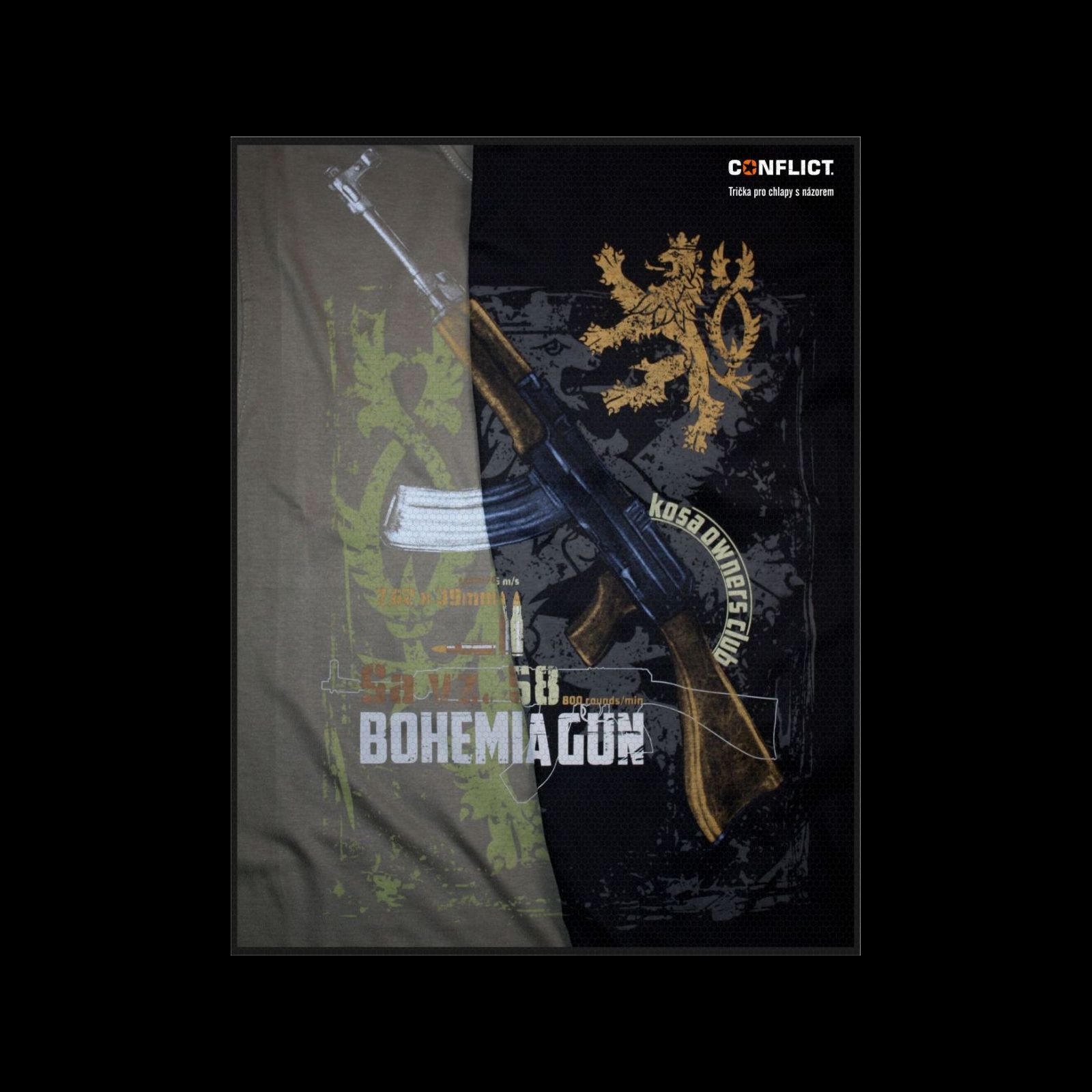 T-shirt with a design based on the collaboration between Conflict and the painter Lileas with the main motif of the Czech submachine gun pattern 58.