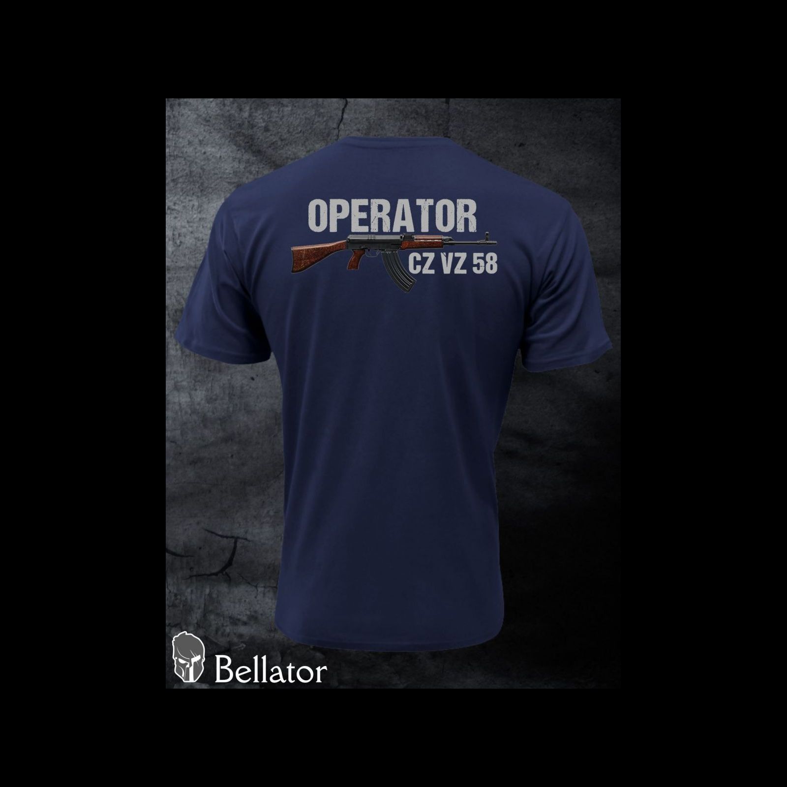- The weapon CZ VZ 58 is depicted on the front on the left breast. The main motif of the weapon is located on the back together with the inscription OPERATOR.