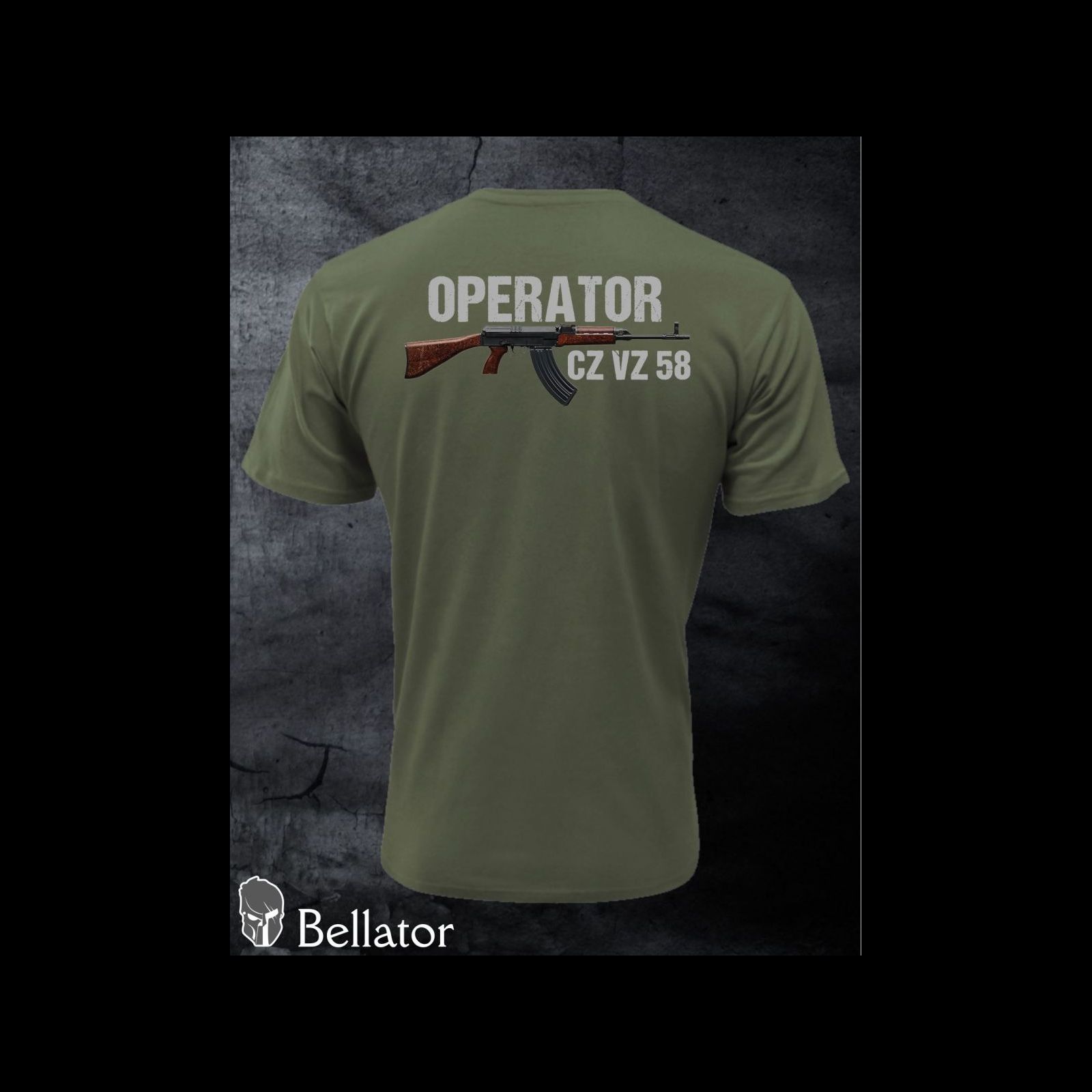 - The weapon CZ VZ 58 is depicted on the front on the left breast. The main motif of the weapon is located on the back together with the inscription OPERATOR.