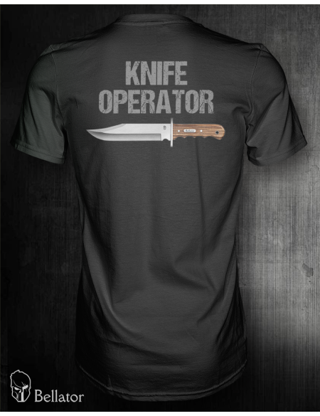 - A knife is depicted on the left breast in front. The main motif of the knife is located on the back along with the inscription OPERATOR.