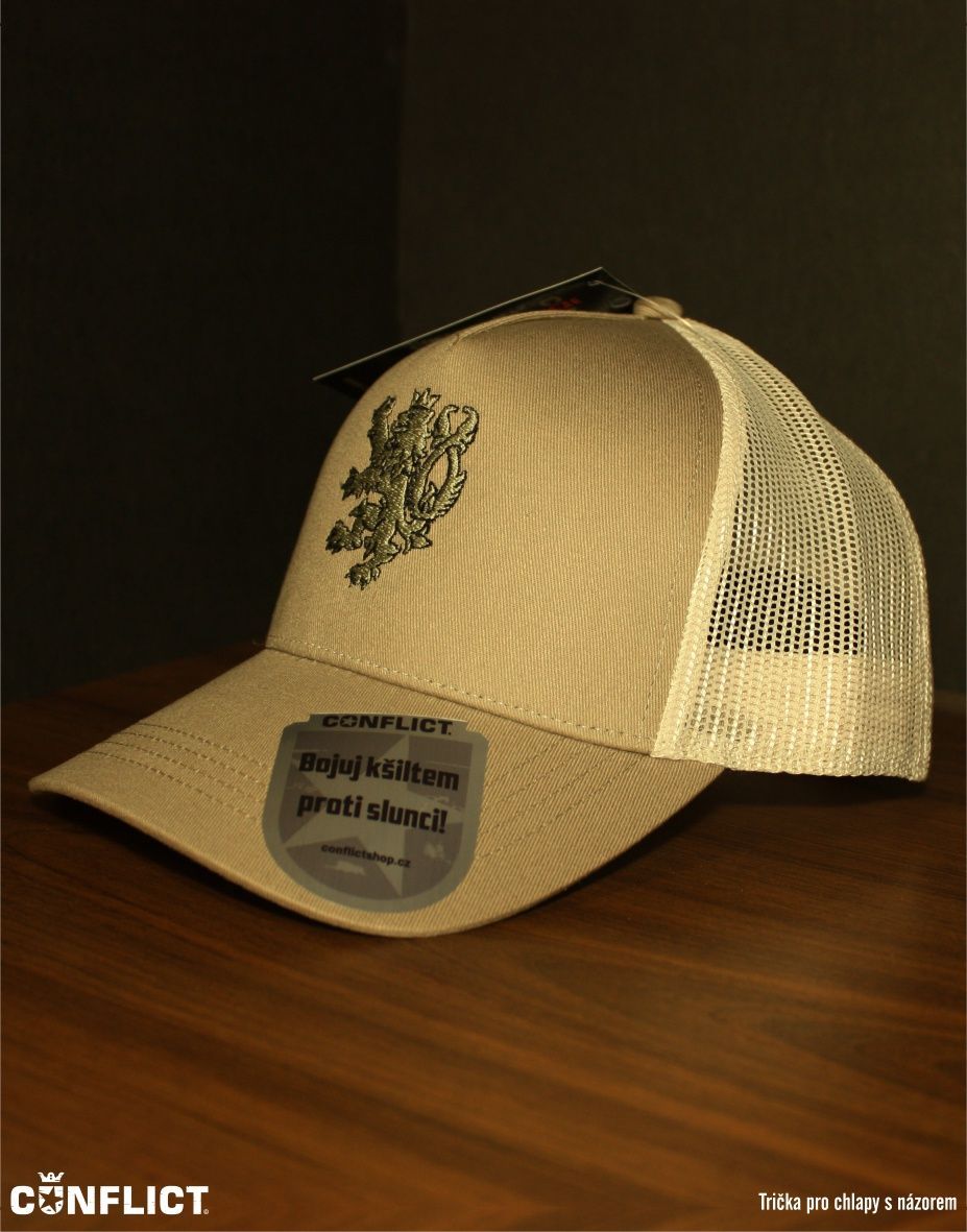 - embroidered lion logo in the Czech style, the Conflict logo is printed in a light color on the peak
