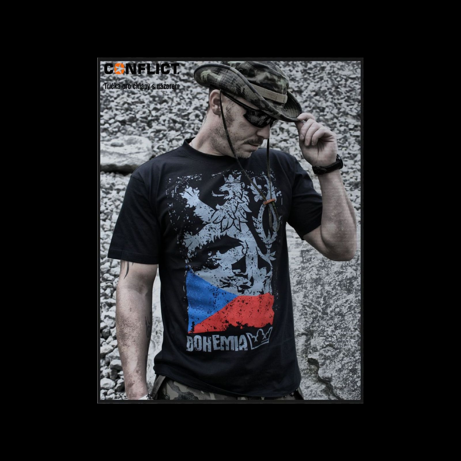 - The T-shirt has a large print of Czech motifs on the front of the body and a Czech crown with the CONFLICT logo on the back.