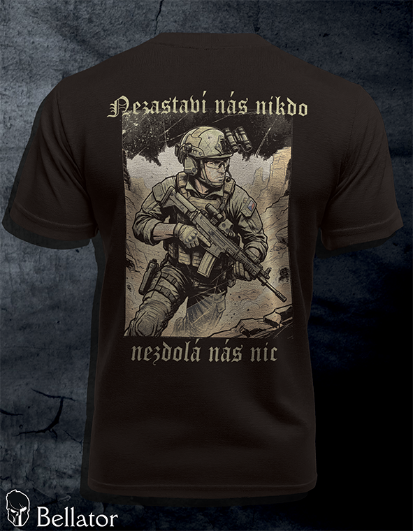 - This motif is not just a picture on the chest, it is an attitude. The figure of a Czech soldier combined with the uncompromising motto No one can stop us, nothing can defeat us embodies the strong will and determination that is in our blood. It is a tribute to all those who do not give up when the going gets tough, and who know that boundaries only exist in their heads. Wear a symbol of strength that clearly says that your path does not end before any obstacle. An ideal piece for everyday wear for those who stand up for themselves.