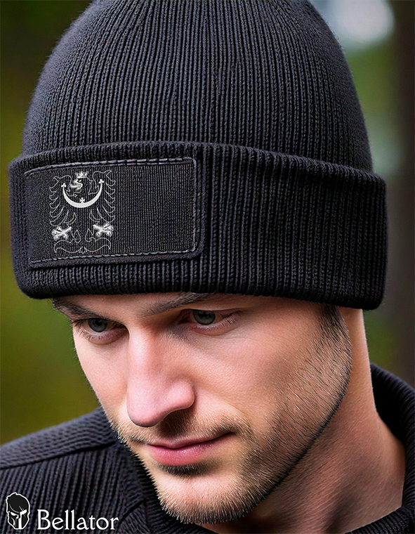 Main page (1452) > Bellator product (1301) > (115) > (36) > Knitted hat Moravian eagle symbol 02 black