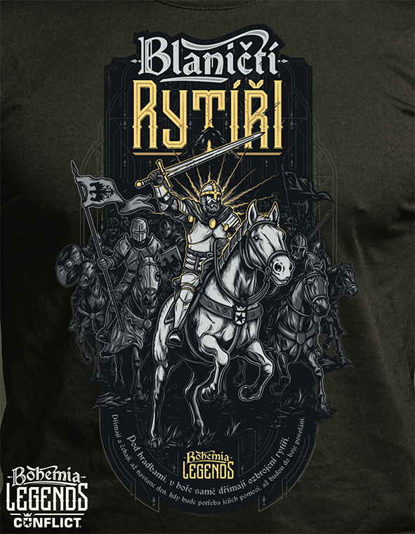 T-shirt Přemysl OráčT-shirt Czech flag blueT-shirt Kosa vz. 58 blackT-shirt Blaničtí rytířiT-shirt Bohemia black