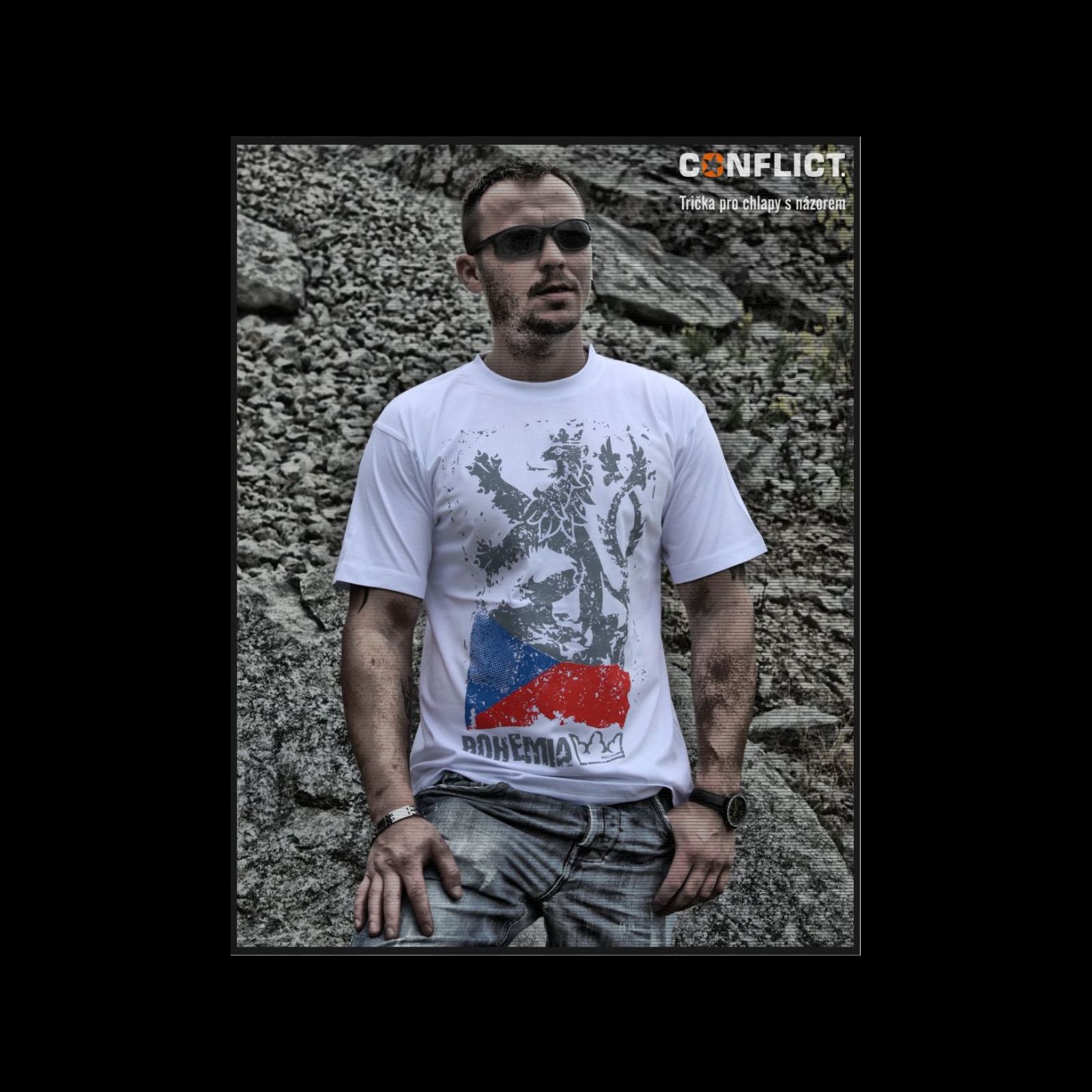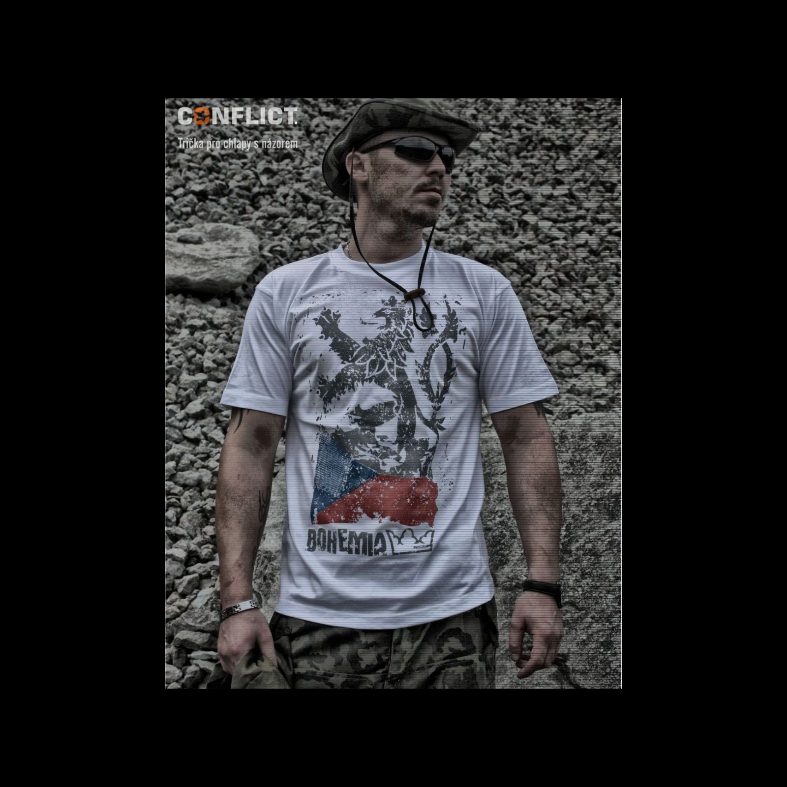 - The T-shirt has a large print of Czech motifs on the front of the body and a Czech crown with the CONFLICT logo on the back.