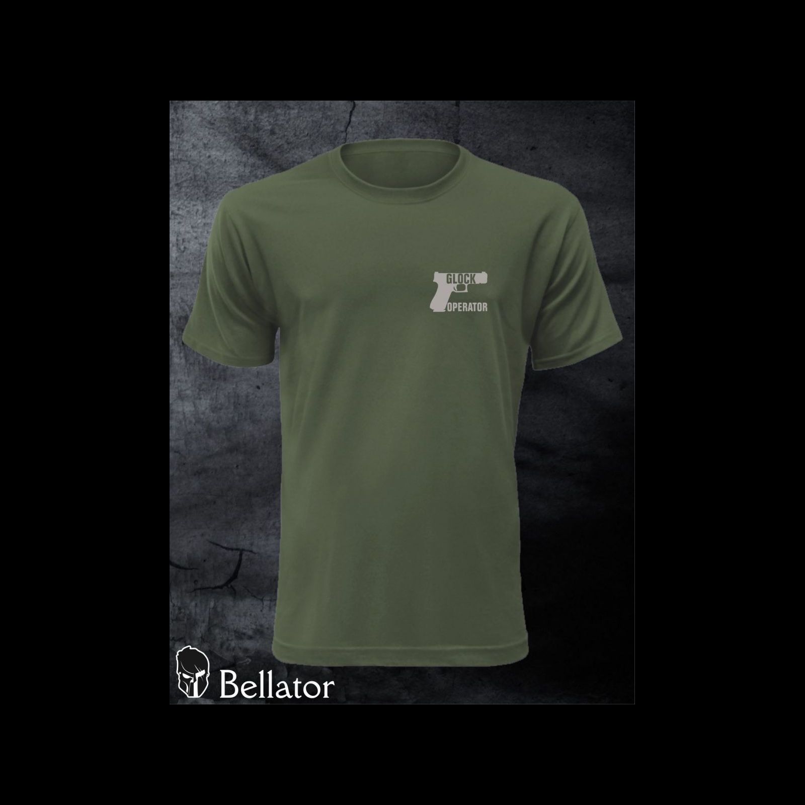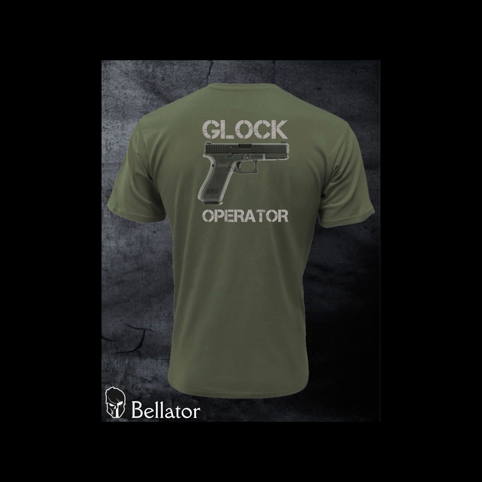 - Potisk trička je složen ze dvou obrázků této zbraně. Vepředu na levém prsu malý potisk Glocka a na zádech text " GLOCK OPERATOR" včetně velkého vyobrazení této zbraně.