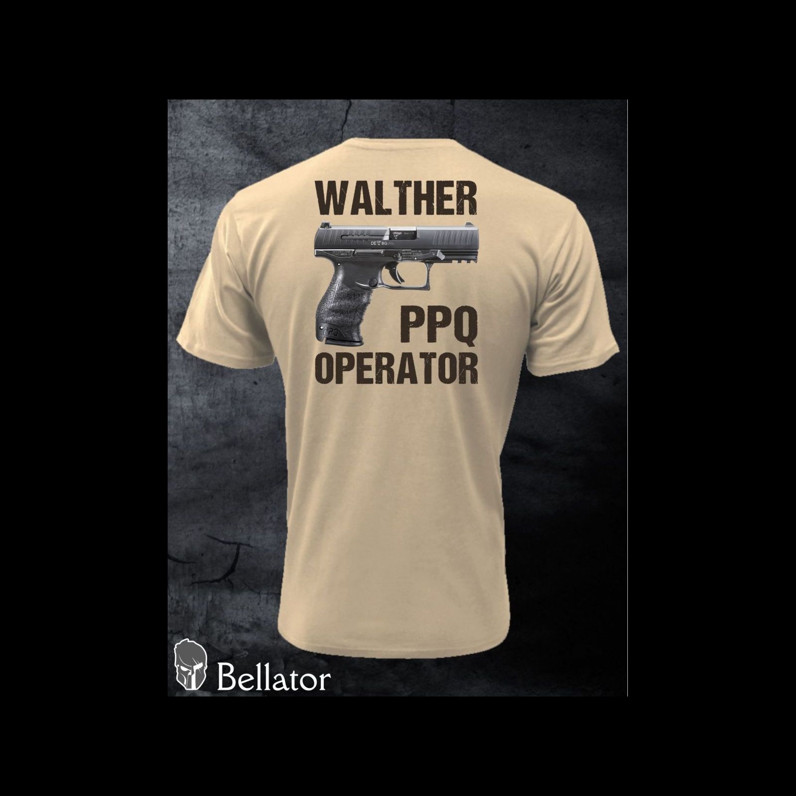 - Vepředu na levém prsu je vyobrazena zbraň Walther PPQ. Hlavní motiv zbraně je umístěn na zádech spolu s nápisem OPERATOR.